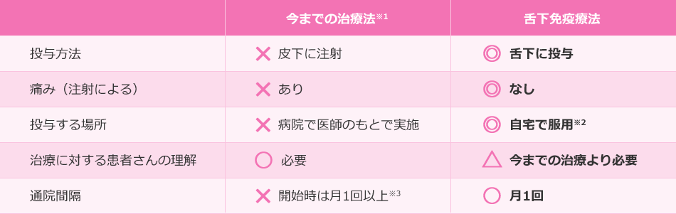 - 2回目の診察以降は上記のように錠剤を1日1回舌の下に置くことを続け、毎月1回通院していただきます。